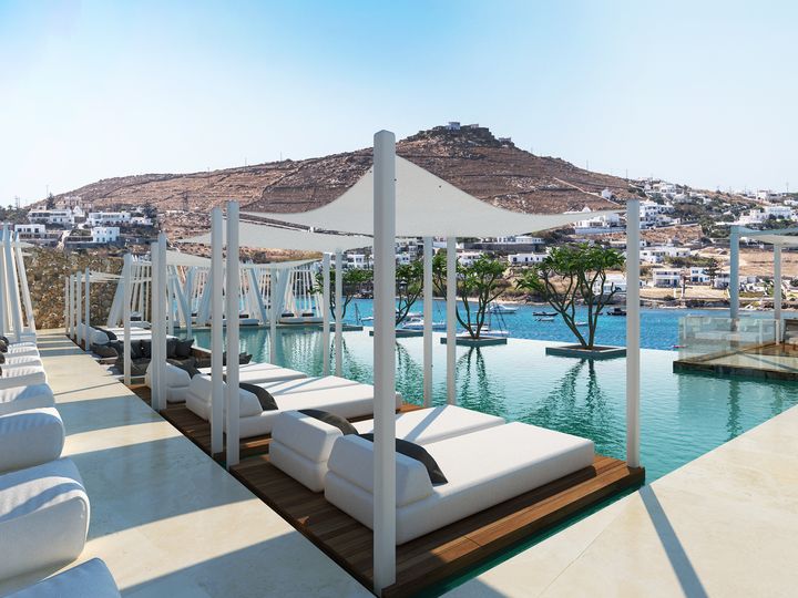 Take a dip at the main pool of Once In Mykonos overlooking the famous Ornos beach.