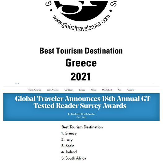 Global Traveler: Greece is one of the best Tourism destinations for the year 2021 American Tested Reader Survey Awards.